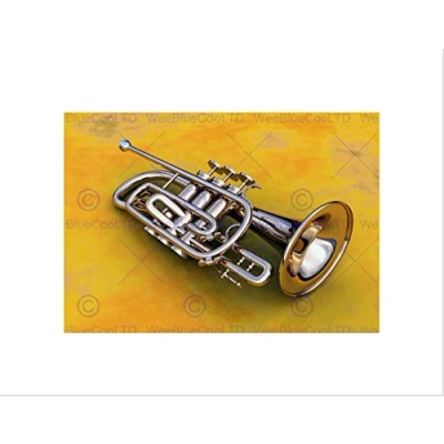 Wee Blue Coo TRUMPET JAZZ BLUES INSTRUMENT MUSIC BLACK FRAMED ART PRINT PICTURE B12X9203
