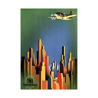 Wee Blue Coo Twa Air Flight Plane City Skyscraper Ad Picture Wall Art Print