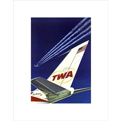 Wee Blue Coo TWA AIRLINE STARS STRIPES AIRPLANE AEROPLANE VINTAGE ADVERT ART PRINT B12X582