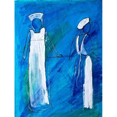 Wee Blue Coo Two Abstract Nurses Figures Photo Art Large Print Poster Wall Decor 18X24 Inch