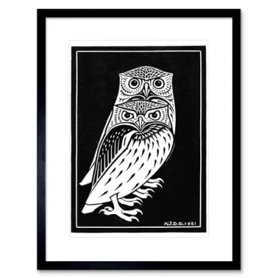 Wee Blue Coo Two Owls Illustration Julie De Graag Art Print Framed Poster Wall Decor 12x16 inch