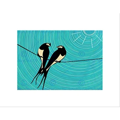 Wee Blue Coo Two Swallows Illustration Sun Art Picture Wall Print