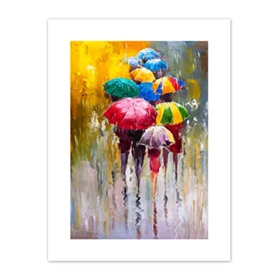 Wee Blue Coo Umbrellas In The Rain Painting Art Print Canvas Premium Wall Decor Poster