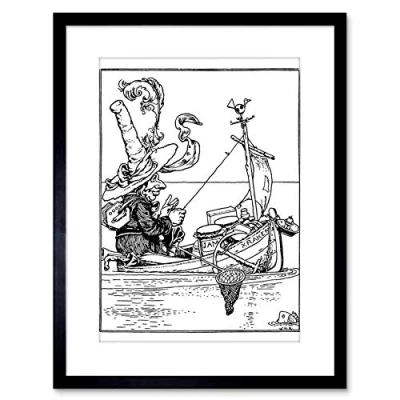 Wee Blue Coo UNCLE LUBIN BOAT SAIL SEA HEATH ROBINSON FRAMED ART PRINT F97X11064