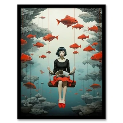 Wee Blue Coo Underwater Dreamworld Surreal Seascape Artwork Framed Wall Art Print A4