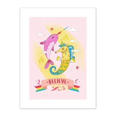 Wee Blue Coo Unicorn Seahorse Narwhal Believe Art Print Canvas Premium Wall Decor Poster