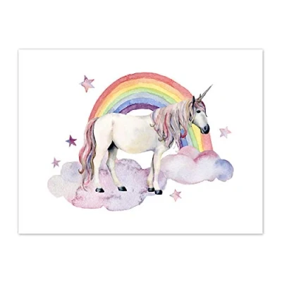 Wee Blue Coo Unicorn Watercolour Rainbow Art Print Canvas Premium Wall Decor Poster