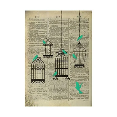 Wee Blue Coo Upcycle Dictionary Birdcage Birds Wall Art Print