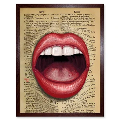 Wee Blue Coo Upcycle Dictionary Mouth Surreal Lips Art Print Framed Poster Wall Decor 12x16 inch