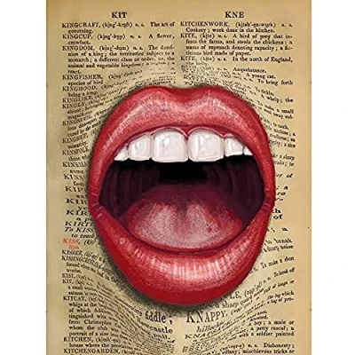 Wee Blue Coo Upcycle Dictionary Mouth Surreal Lips Unframed Wall Art Print Poster Home Decor Premium