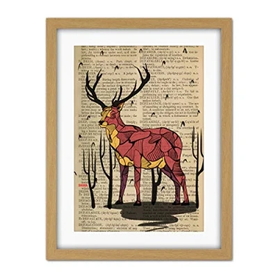 Wee Blue Coo Upcycle Dictionary Stag Deer Artwork Framed Wall Art Print 18X24 Inch