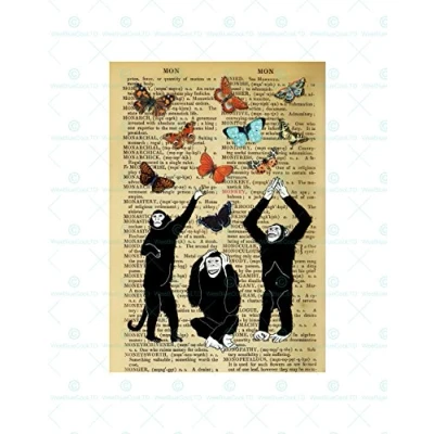 Wee Blue Coo Upcycle Dictionay Monkeys Butterflies Wall Art Print