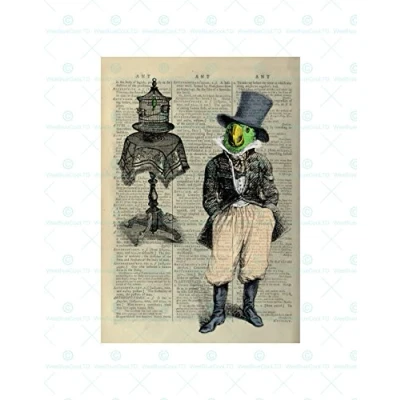 Wee Blue Coo Upcycle Parrot Dressed Tophat Wall Art Print
