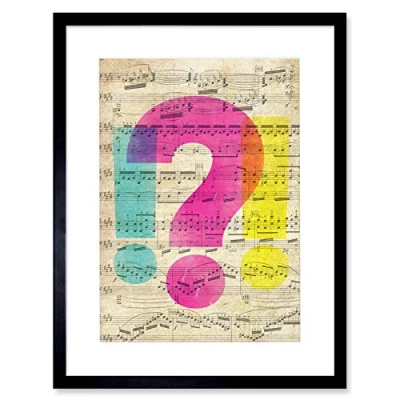 Wee Blue Coo Upcycle Sheet Music Question Shock Artwork Framed Wall Art Print 12X16 Inch