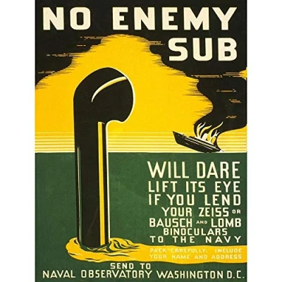 Wee Blue Coo Usa Navy Periscope Submarine War Binoculars Vintage Advertising Art Print Poster Wall Decor 12X16 Inch