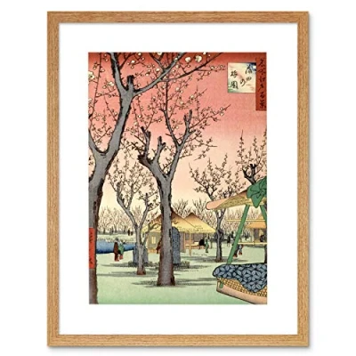 Wee Blue Coo Utagawa Hiroshige Japanese Plum Orchard In Kamada Artwork Framed Wall Art Print 12X16 Inch