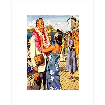 Wee Blue Coo Vacation Scene Cruise Ship Deck Hawaii Lei Garland Wall Art Print