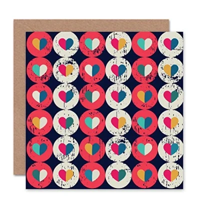 Wee Blue Coo VALENTINES HEARTS MULTI COLOUR PATTERN BLANK GREETINGS CARD