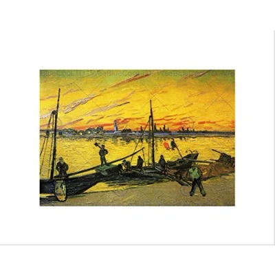 Wee Blue Coo VAN GOGH COAL BARGES 1888 OLD MASTER BLACK FRAMED ART PRINT B12X2035