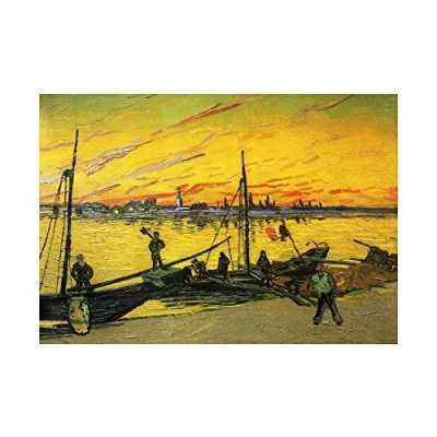 Wee Blue Coo Van Gogh Coal Barges 1888 Painting Art Print Wood Frame Picture F12X1616
