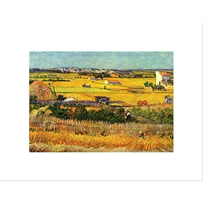 Wee Blue Coo VAN GOGH HARVESTLA CRAU WITH MONT MAJOUR OLD FRAMED ART PRINT B12X2075
