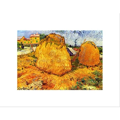 Wee Blue Coo VAN GOGH HAYSTACKS IN PROVENCE 1888 BLACK FRAMED ART PRINT B12X2076