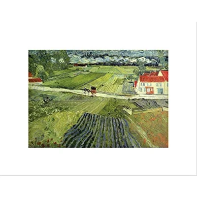 Wee Blue Coo VAN GOGH LANDSCAPE CARRIAGE TRAIN 1890 BLACK FRAMED ART PRINT B12X2090