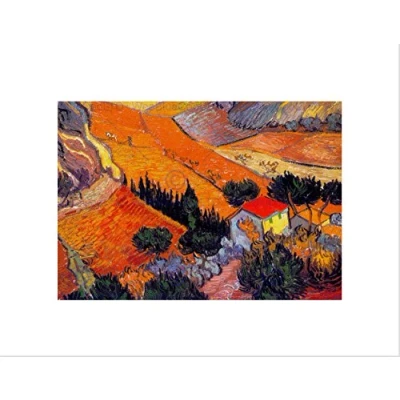 Wee Blue Coo VAN GOGH LANDSCAPE WITH HOUSE PLOUGHMAN 1889 FRAMED ART PRINT B12X2093