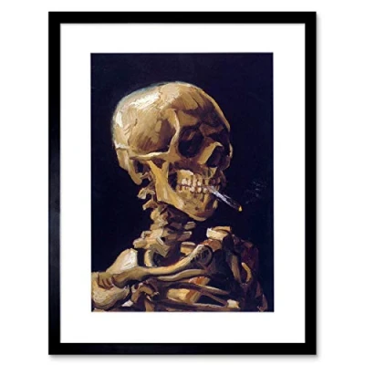 Wee Blue Coo Van Gogh Skull Burning Cigarette Old Painting Framed Print Picture 25 F12X1625