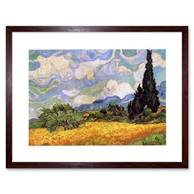 Wee Blue Coo Van Gogh Wheat Field Cypresses 1889 Painting Picture Framed Wall Art Print