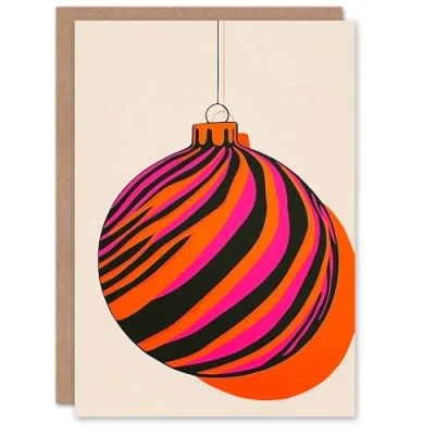 Wee Blue Coo Vibrant Bauble Pink Orange Modern Fun Xmas For Mum Christmas Card