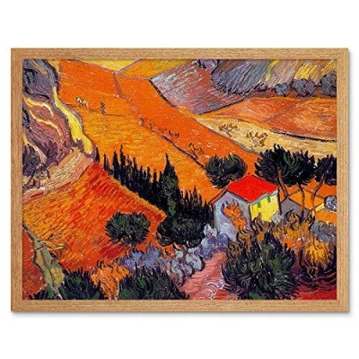 Wee Blue Coo Vincent Van Gogh Landscape With House Ploughman 1889 Painting Art Print Framed Poster Wall Decor 12X16 Inch
