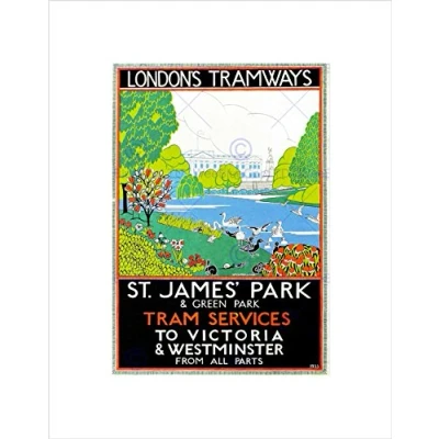 Wee Blue Coo VINTAGE AD TRANSPORT LONDON TRAMWAYS ST JAMES PARK FRAMED ART PRINT B12X11573