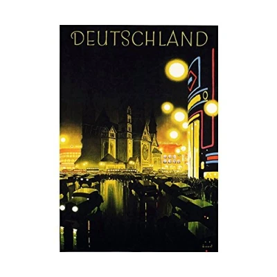 Wee Blue Coo Vintage Ad Travel Germany City Car Lights Church Wall Art Print