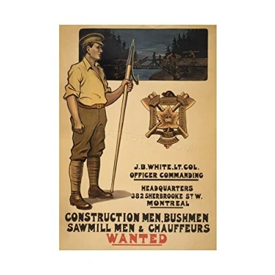 Wee Blue Coo Vintage Ad War WWI Canada Forestry Battalion Recruit Wall Art Print