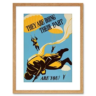 Wee Blue Coo VINTAGE AD WAR WWII DOING THEIR PART PARATROOPER SOLDIER FRAMED PRINT F97X6097