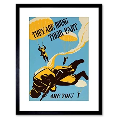 Wee Blue Coo VINTAGE AD WAR WWII DOING THEIR PART PARATROOPER SOLDIER FRAMED PRINT F97X6097