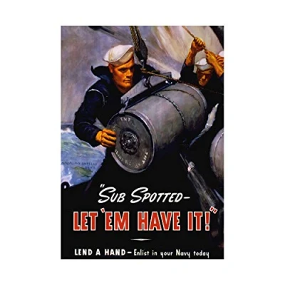 Wee Blue Coo Vintage Ad War WWII Us Navy Submarine Bomb Sailor Military Wall Art Print