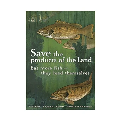 Wee Blue Coo Vintage Ad War WWII USA Eat Fish Save Produce Land Food Wall Art Print