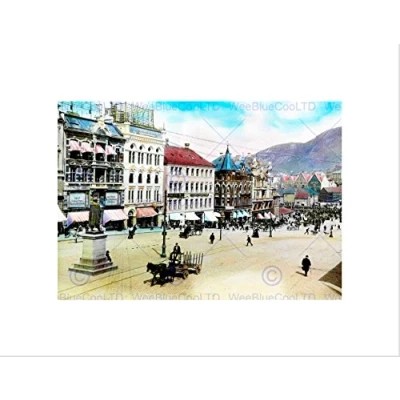 Wee Blue Coo VINTAGE ADDED COLOUR NORWAY BERGEN STREET STATUE CART FRAMED ART PRINT B12X3422