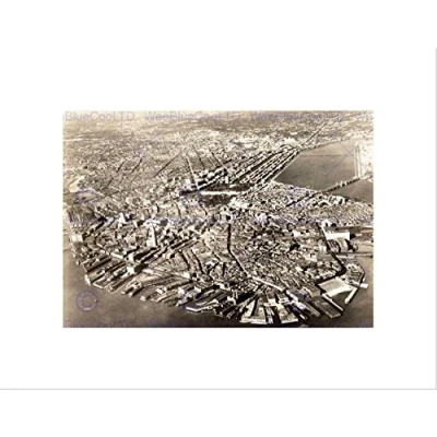 Wee Blue Coo Vintage Aerial View Cityscape Boston USA Waterfront Wall Art Print