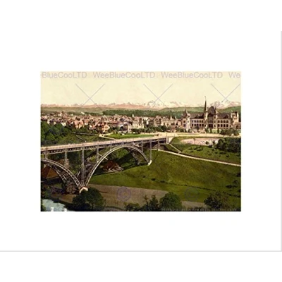Wee Blue Coo VINTAGE BERNE SWITZERLAND BRIDGE CITY MOUNTAIN FRAMED ART PRINT MOUNT B12X11743