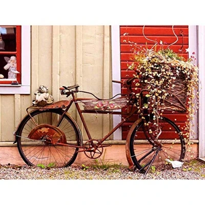 Wee Blue Coo Vintage Bike Bicycle Flower Basket French Art Print Poster Wall Decor 12X16 Inch