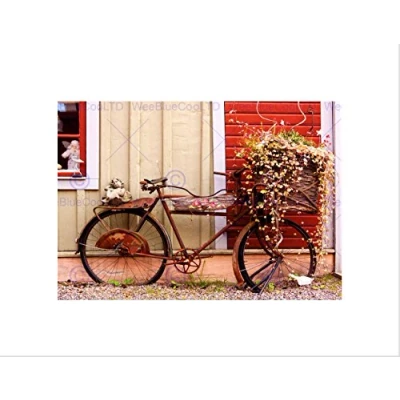 Wee Blue Coo VINTAGE BIKE BICYCLE FLOWER BASKET FRENCH BLACK FRAMED ART PRINT B12X8814
