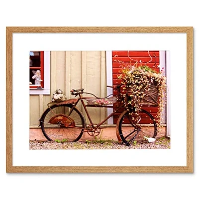 Wee Blue Coo Vintage Bike Bicycle Flower Basket French Picture Framed Wall Art Print