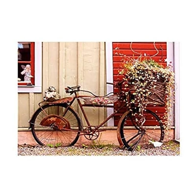 Wee Blue Coo Vintage Bike Bicycle Flower Basket French Picture Wall Art Print