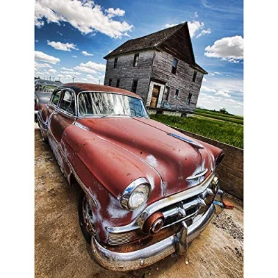 Wee Blue Coo Vintage Car Automobile Red Classic Art Print Poster Wall Decor 12X16 Inch