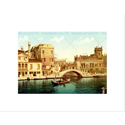 Wee Blue Coo Vintage Colour Tint Venice Canal Gondola Italy Wall Art Print