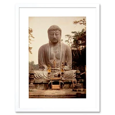 Wee Blue Coo Vintage Great Amida Buddha Kamakura Kotokuin Temple Japan Framed Wall Art Print