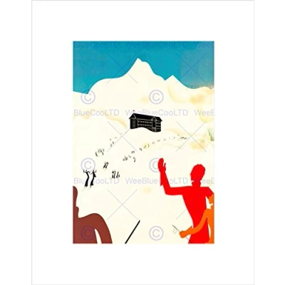 Wee Blue Coo VINTAGE ILLUSTRATION SKI SPORT ALPS WINTER NEW FRAMED ART PRINT MOUNT B12X11654